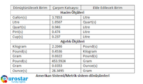 Amerika ölçü birimleri, Türkiye’de kullanılan ölçü birimlerimden farklıdır bundan dolayı Amerika’ya seyahat etmeyi düşünen ya da oraya yerleşmeyi planlayanlar Amerika ölçü birimlerini dikkate almaktadır.
