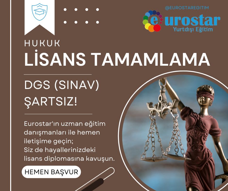 2 yıllık adalet bölümü mezunları ülkemizde geçiş sınavına girerek hukuk bölümünde eğitimlerine devam edebiliyor. Fakat geçiş sınavından yeterli puan alamayan yada sınava girmeyen öğrenciler birçok engel ile karşı karşıya kalabiliyorlar. Eurostar yurtdışı eğitim danışmanlığı aracılığı ile engellere takılmadan lisans tamamlama imkanı bulan gençler sınava girmek zorunda kalmıyorlar. Ayrıca yüksek taban puanları almalarına da gerek yok. Bosna Hersek, Bulgaristan, Romanya, Çek Cumhuriyeti, Gürcistan, Belarus, Azerbaycan, Kosova Ukrayna ve Moldova’da farklı birçok ülkede bulunan üniversitelerde yurtdışında sınavsız dikey geçiş imkanı ile Hukuk bölümünde lisans tamamlama yapılabiliyor. Herhangi bir sınav takvimi ile vakit kaybetmek zorunda kalmayan gençler hukuk alanında eğitimlerine sınavsız olarak devam edebiliyor. Akts (Avrupa Kredi Transfer Sistemi) geçerli olan üniversitelere kayıt olmak için Eurostar yurtdışı eğitim danışmanlığına başvuru yapmak yeterli olacaktır. Adalet bölümü 2 yıllık meslek yüksek okulu mezunları eğitim süresince almış oldukları ortak dersleri tekrar almak zorunda kalmıyorlar. Hukuk alanında dikey geçiş fırsatından yararlanabilmek için 25 yaşını aşmamış olmanız gereklidir. Ayrıca sağlık raporu çıkartmanız aranan koşullar arasındadır. Hiçbir sınav şartı olmadan direkt olarak 3. sınıftan eğitime başlanabiliyor. Dolayısıyla adalet bölümünden hukuk bölümüne geçiş mümkündür diyebiliriz. Dgs siz hukuk lisans tamamlama mümkündür.