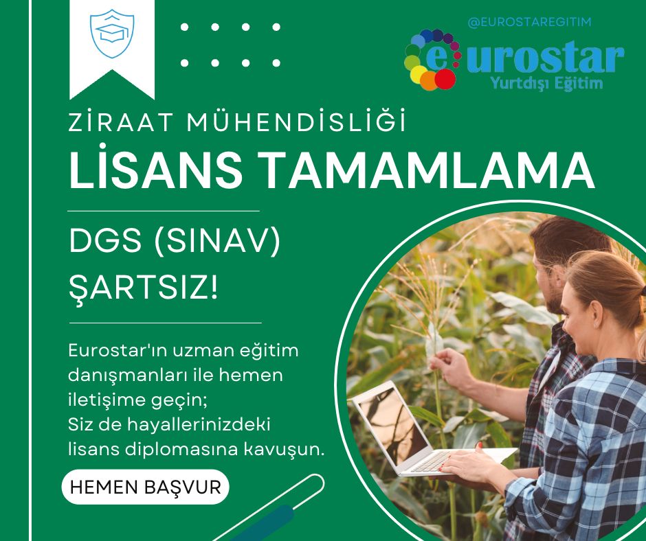 Ziraat mühendisliği unvanını elde edebilmek için ihtiyacınız olana DGS sınavına girme durumu da olmak zorunda değil. DGS sınavı derdine son diyerek bir an önce kayıt işleminizi başlatabilir, uzaktan eğitim dönem öğrencilerinden biri olabilirsiniz. Kosova, Belarus, Romanya, Bosna Hersek, Moldova, Ukrayna, Bulgaristan, Çek Cumhuriyeti, Azerbaycan ve Gürcistan gibi seçenek çeşitliliği ile kapınızı çalacak olan yurtdışı ülke fırsatları sizi kararsız bırakabilir.